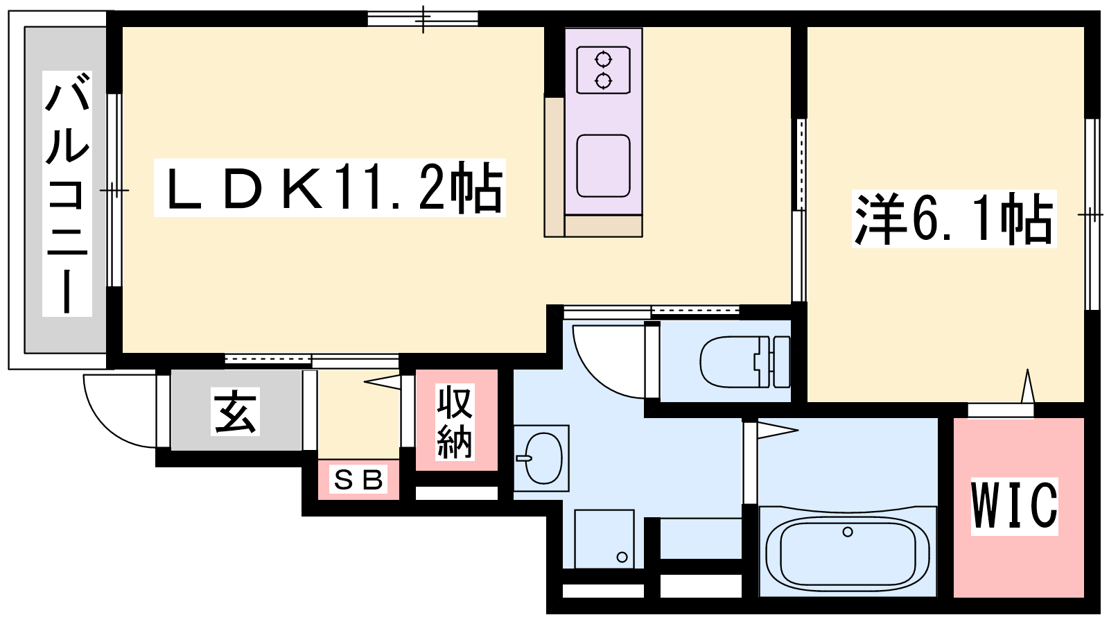 - LDK11.2帖、洋室6.1帖