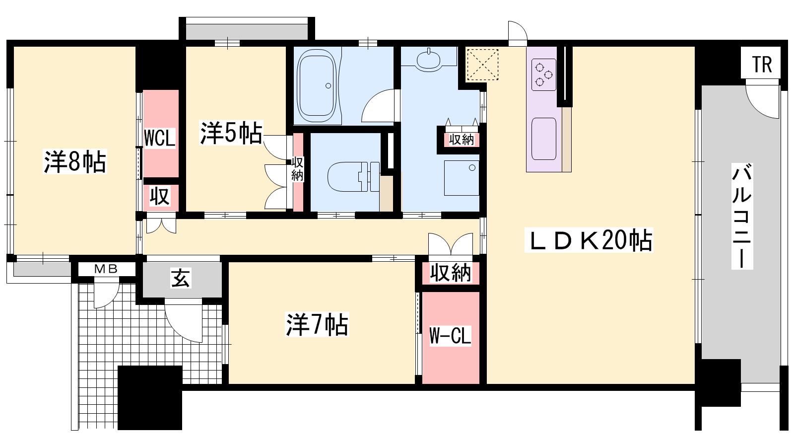 - LDK20帖、洋室8帖、洋室7帖、洋室5帖