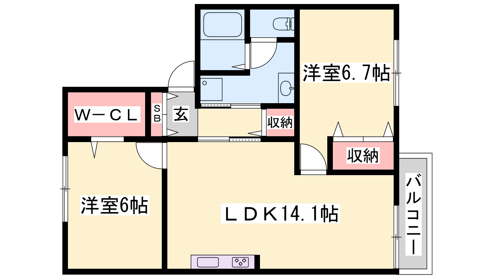 - LDK14.1帖、洋室6.7帖、洋室6帖