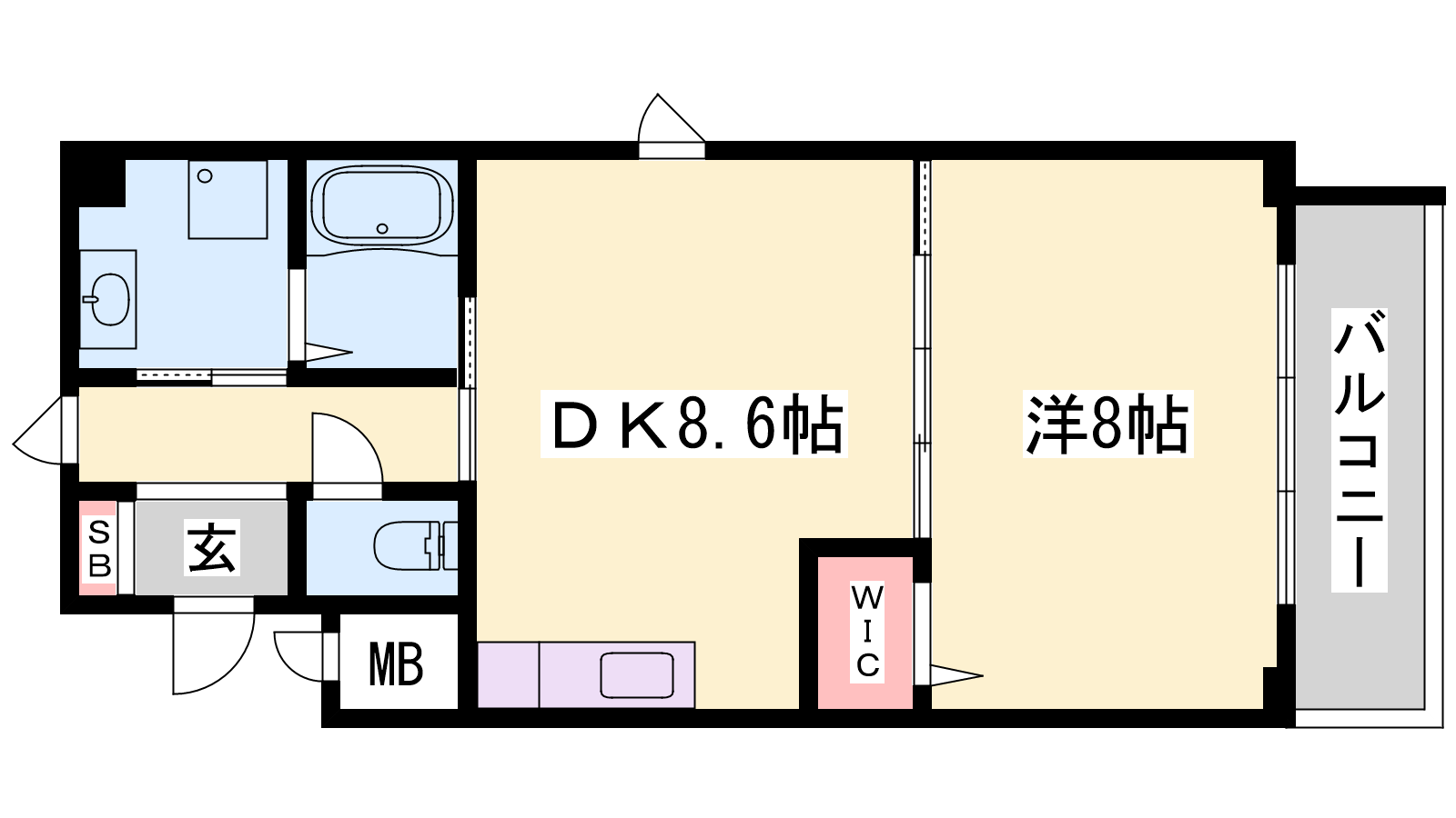 - DK8.6帖、洋室8帖
