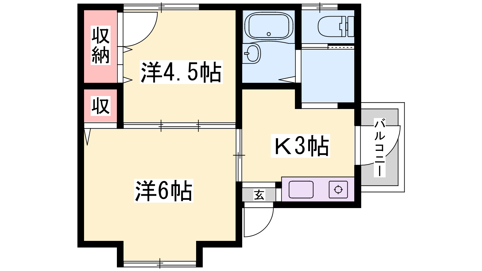 - K3帖、洋室4.5帖、洋室6帖