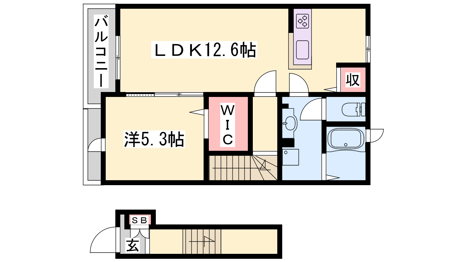 - LDK12.6帖、洋室5.3帖