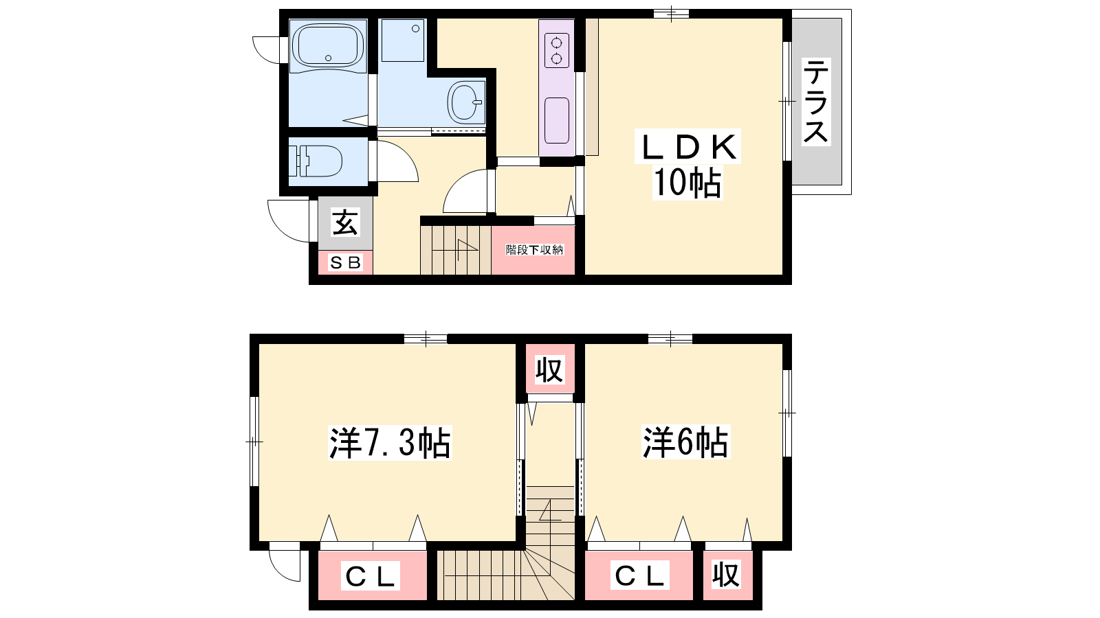 - LDK10帖、洋室7.3帖、洋室6帖