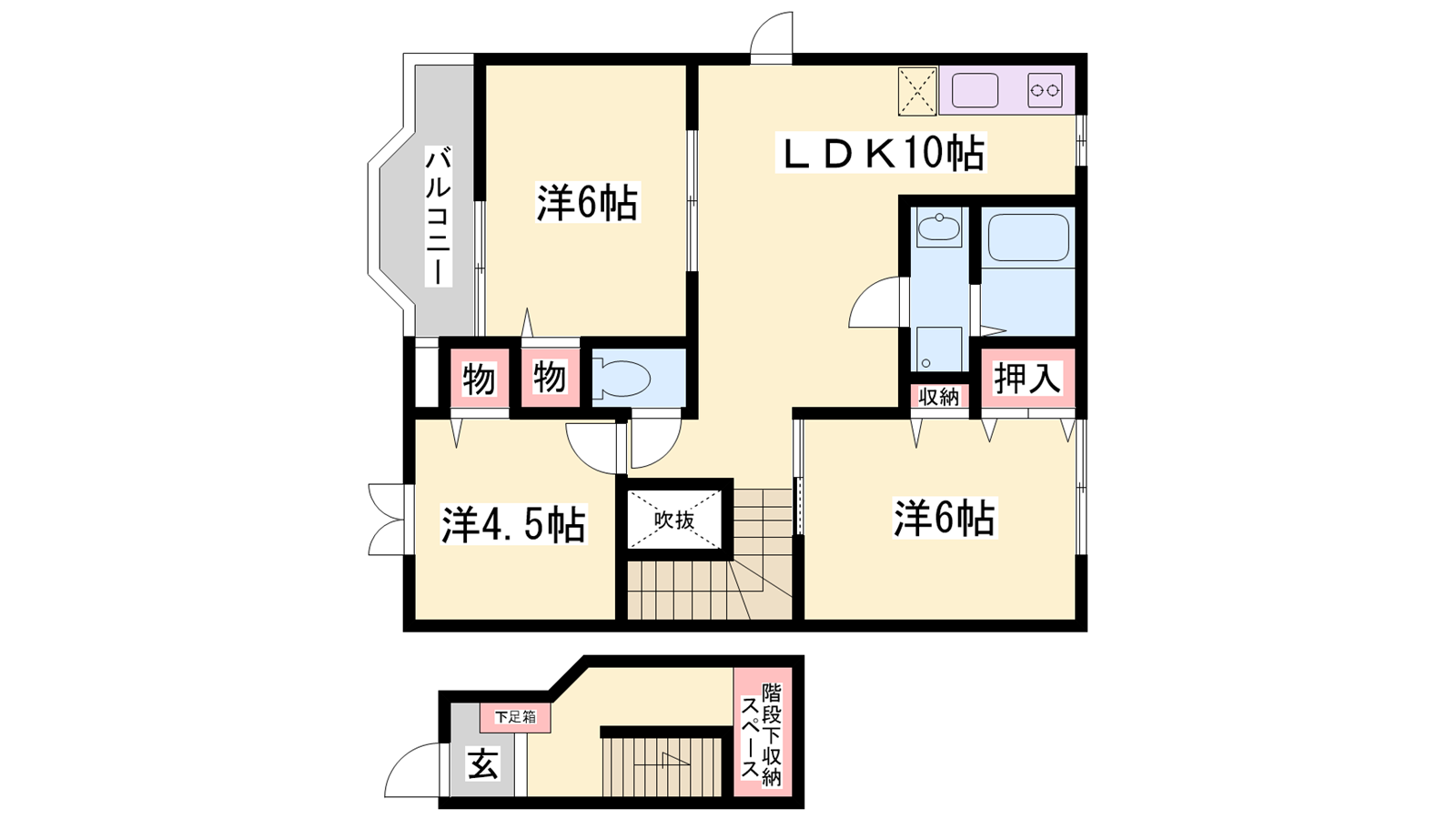- LDK10帖、洋室6帖、洋室4.5帖、洋室6帖