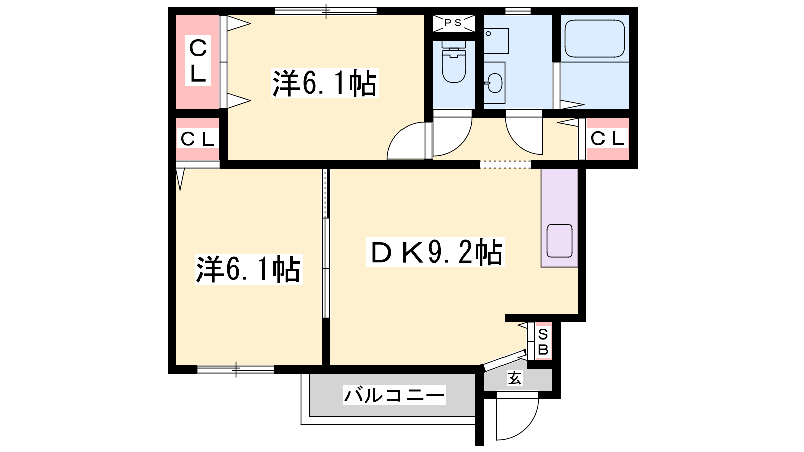 - DK9.2帖、洋室6.1帖、洋室6.1帖