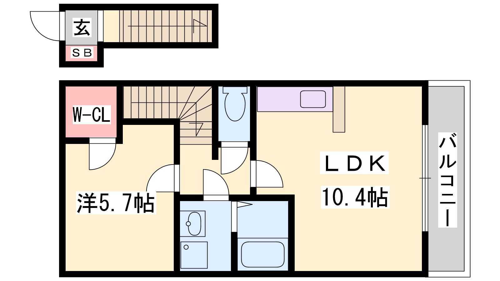 - LDK10.4帖、洋室5.7帖
