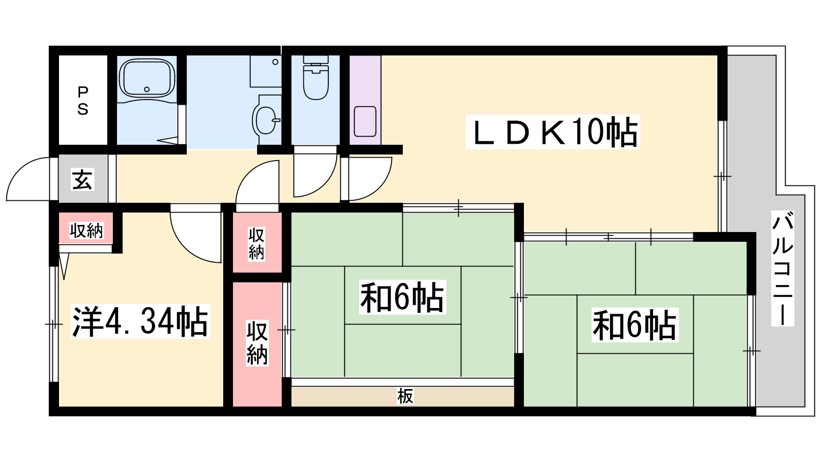 - LDK10帖、和室6帖、和室6帖、洋室4.34帖