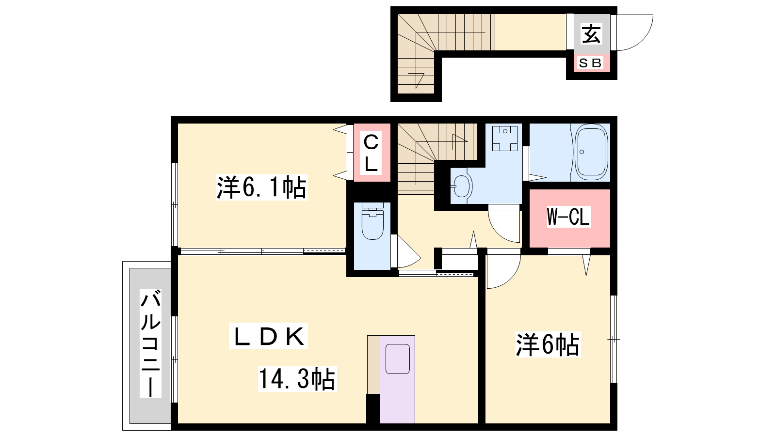 - LDK14.3帖、洋室6.1帖、洋室6帖