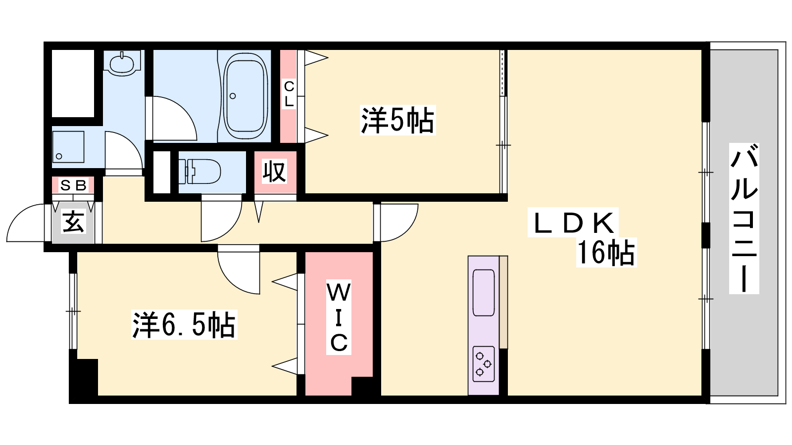- LDK16帖、洋室6.5帖、洋室5帖