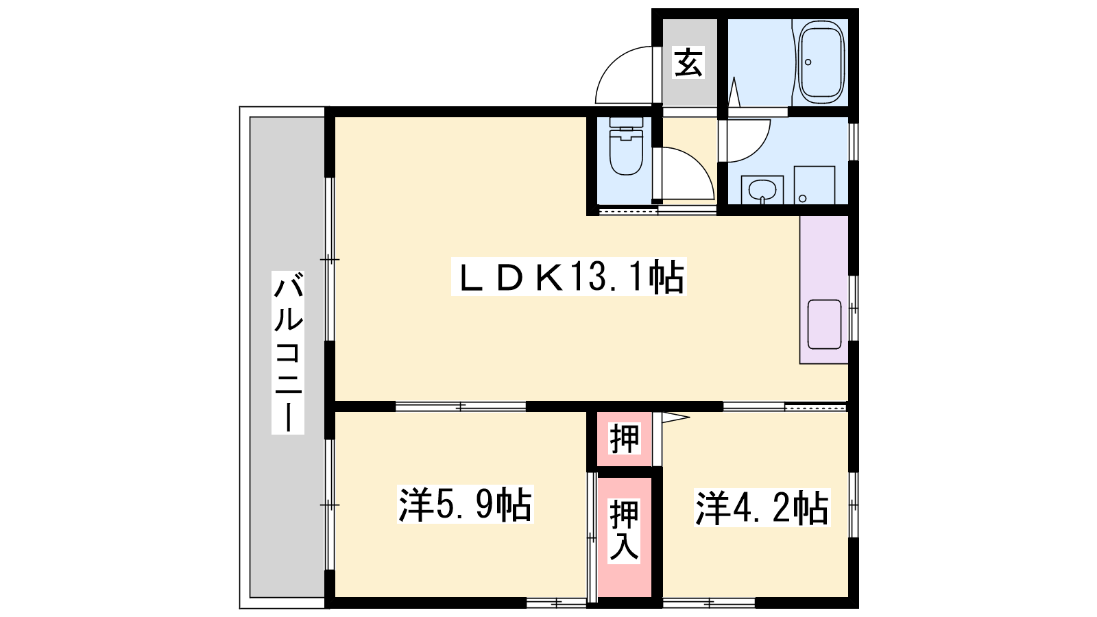 - LDK13.1帖、洋室5.9帖、洋室4.2帖