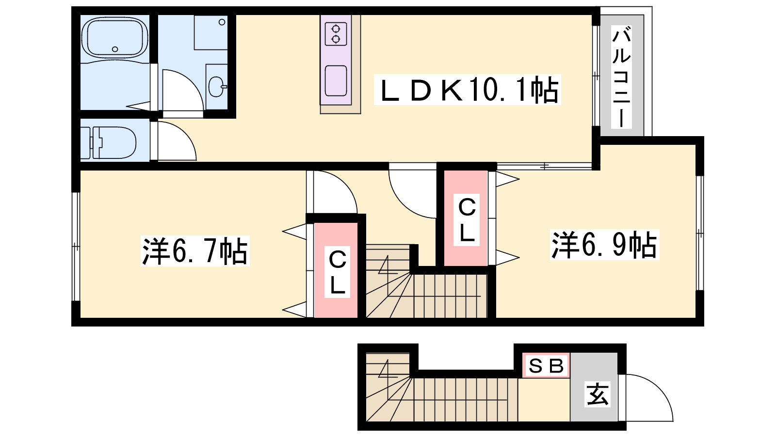 - LDK10.1帖、洋室6.9帖、洋室6.7帖