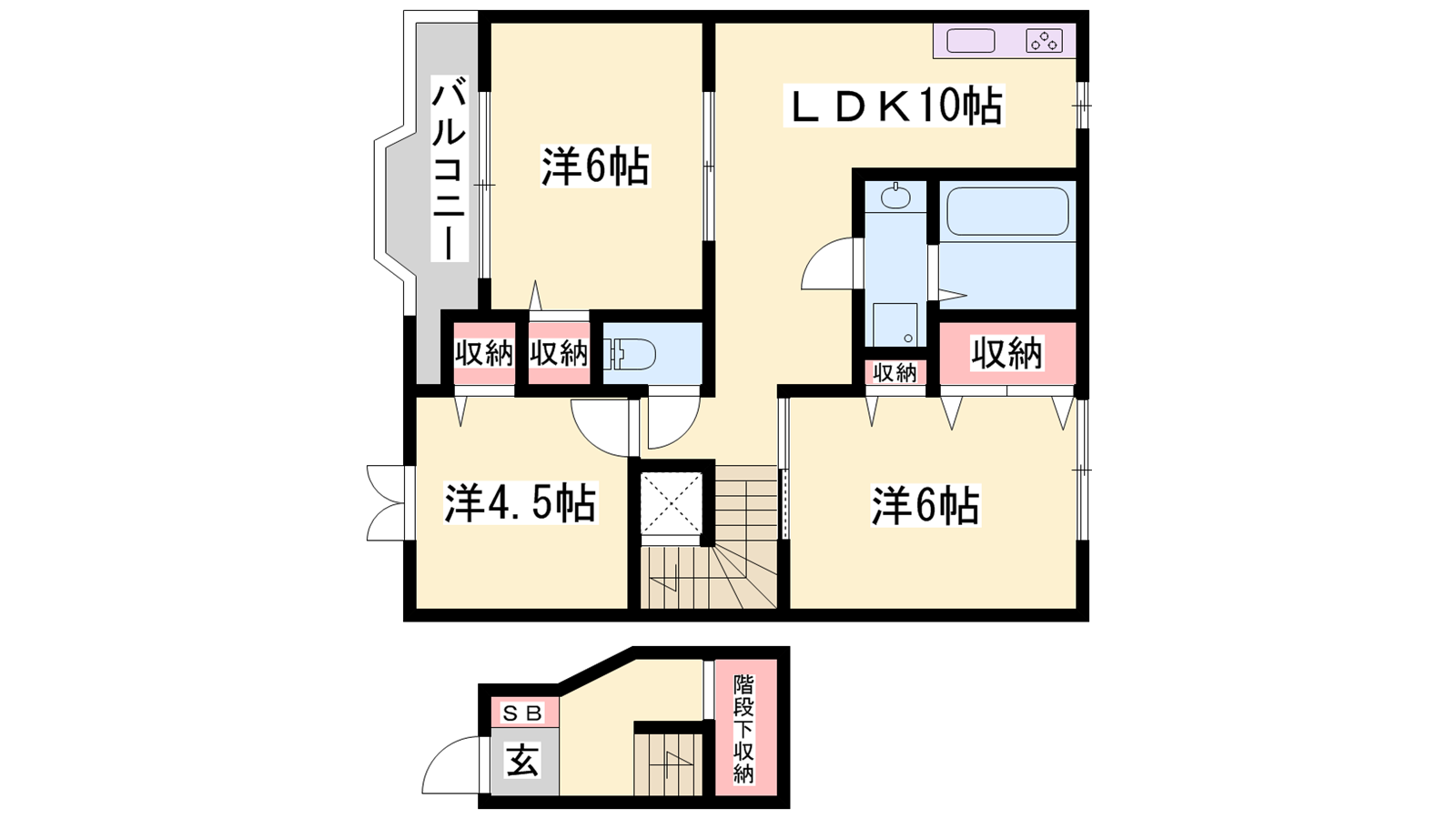 - LDK10帖、洋室6帖、洋室6帖、洋室4.5帖