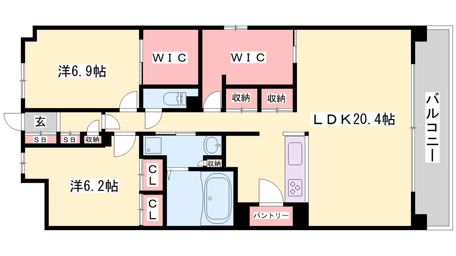 - LDK20.4帖、洋室6.9帖、洋室6.2帖
