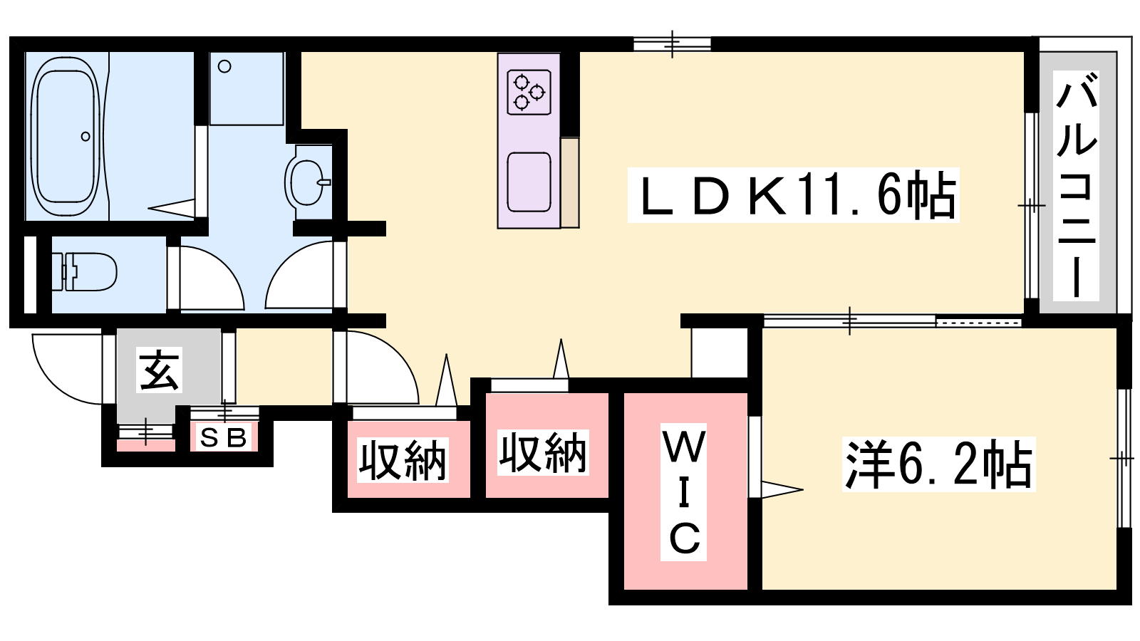 - LDK11.6帖、洋室6帖