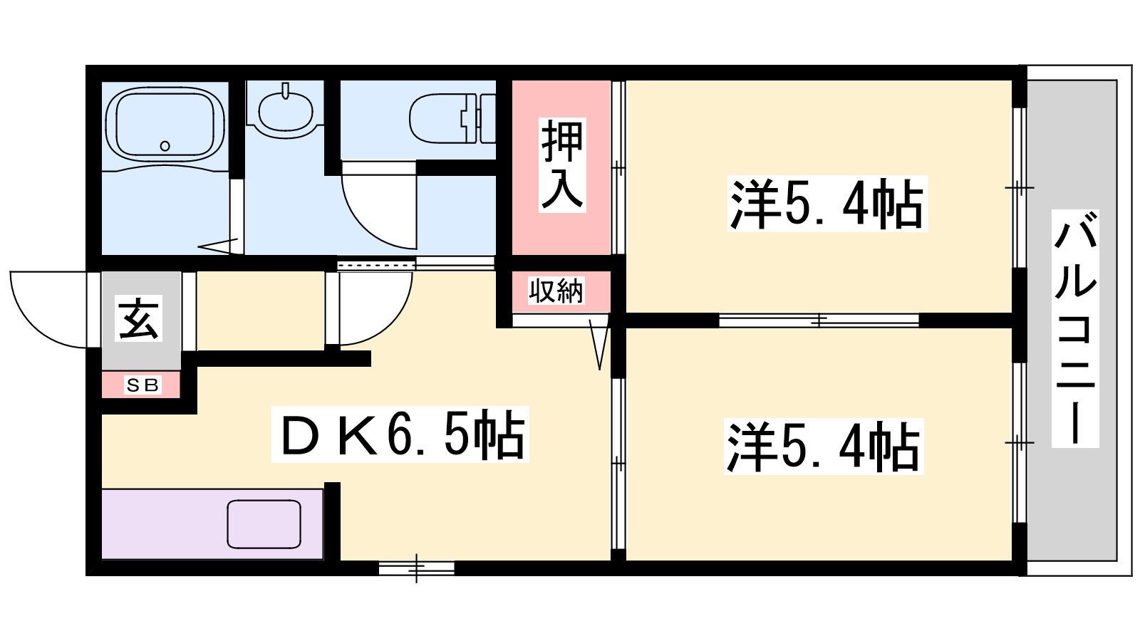 - DK6.5帖、洋室5.4帖、洋室5.4帖