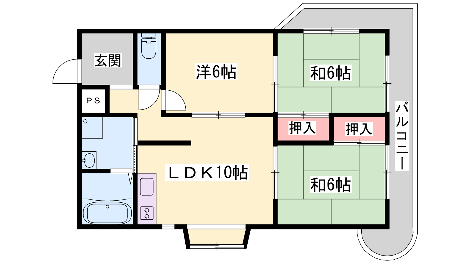 - LDK10帖、洋室6帖、和室6帖、和室6帖