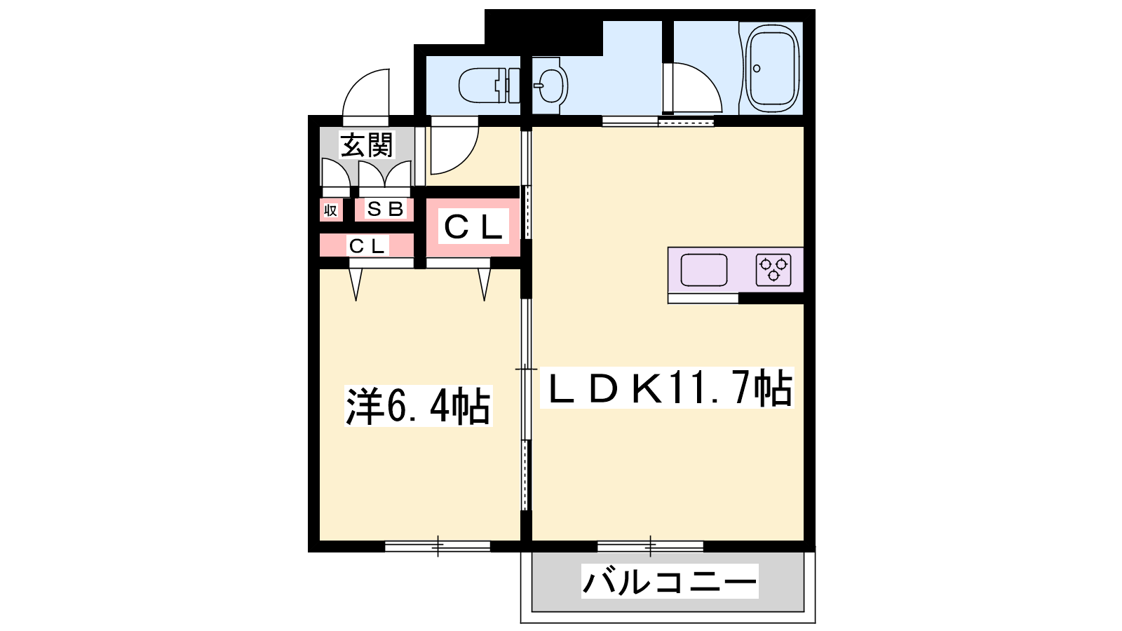 - LDK11.7帖、洋室6.4帖