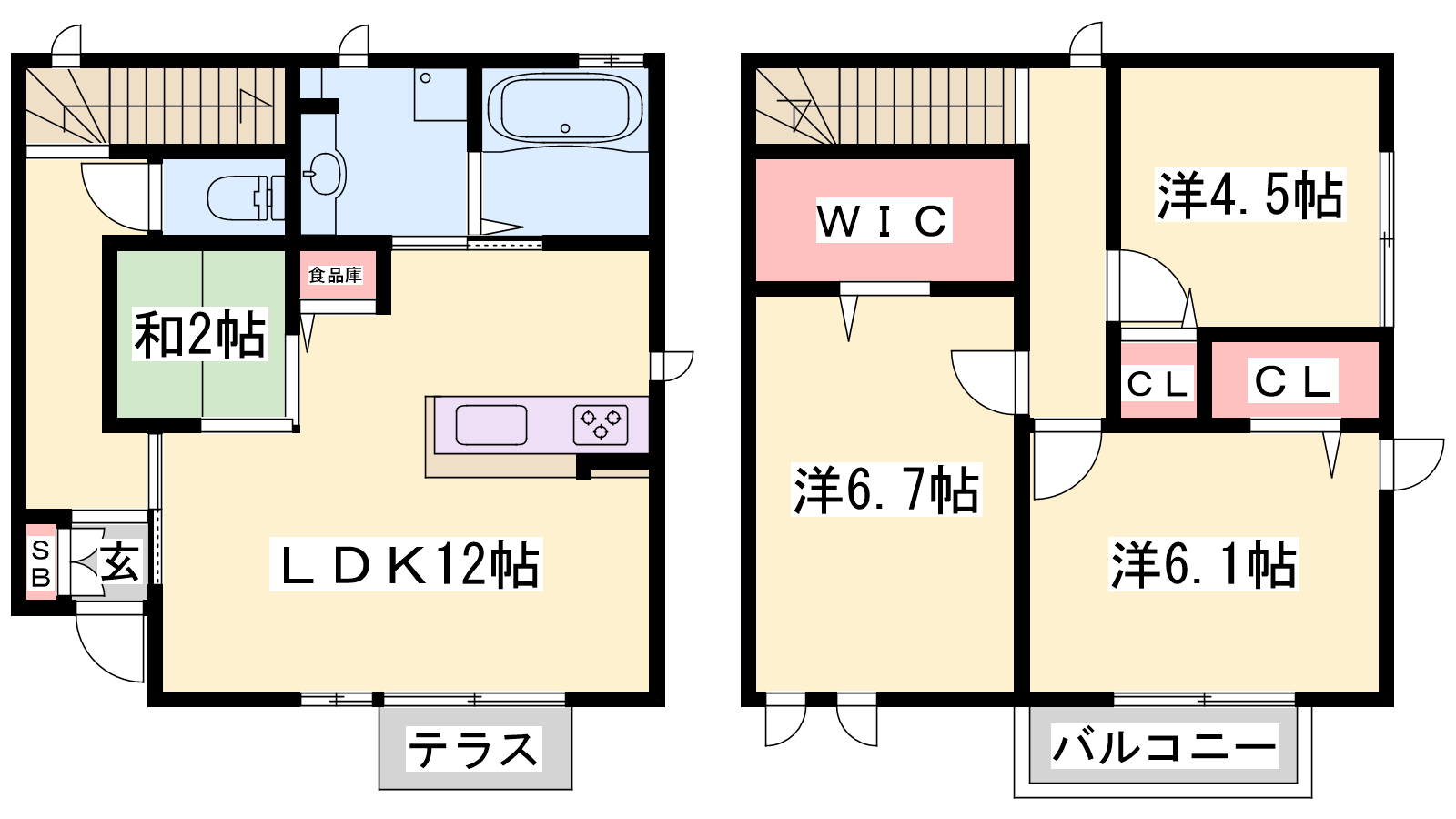 - LDK12帖、洋室6.7帖、洋室6.1帖、洋室4.5帖