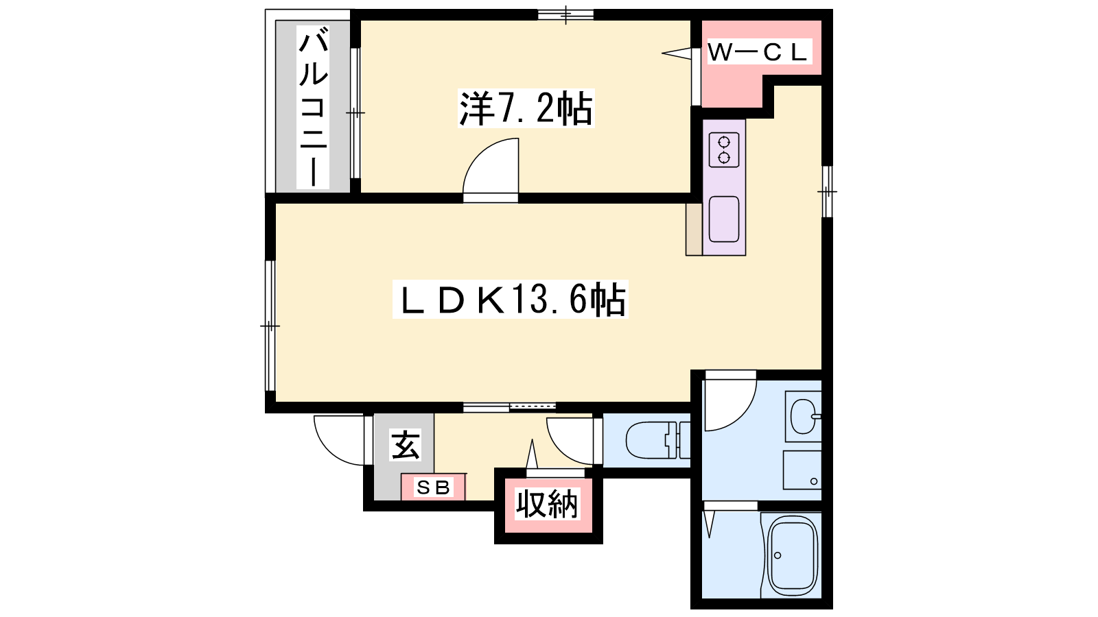 - LDK13.6帖、洋室7.2帖
