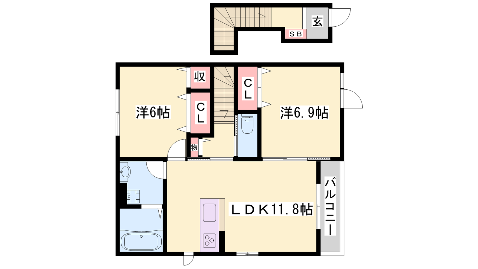 - LDK11.8帖、洋室6.9帖、洋室6帖