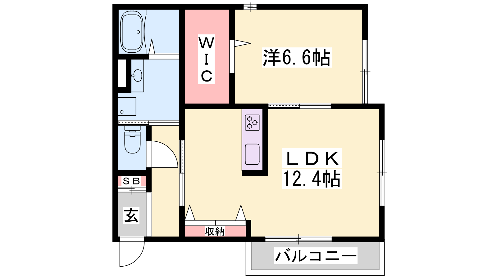 - LDK12.4帖、洋室6.6帖