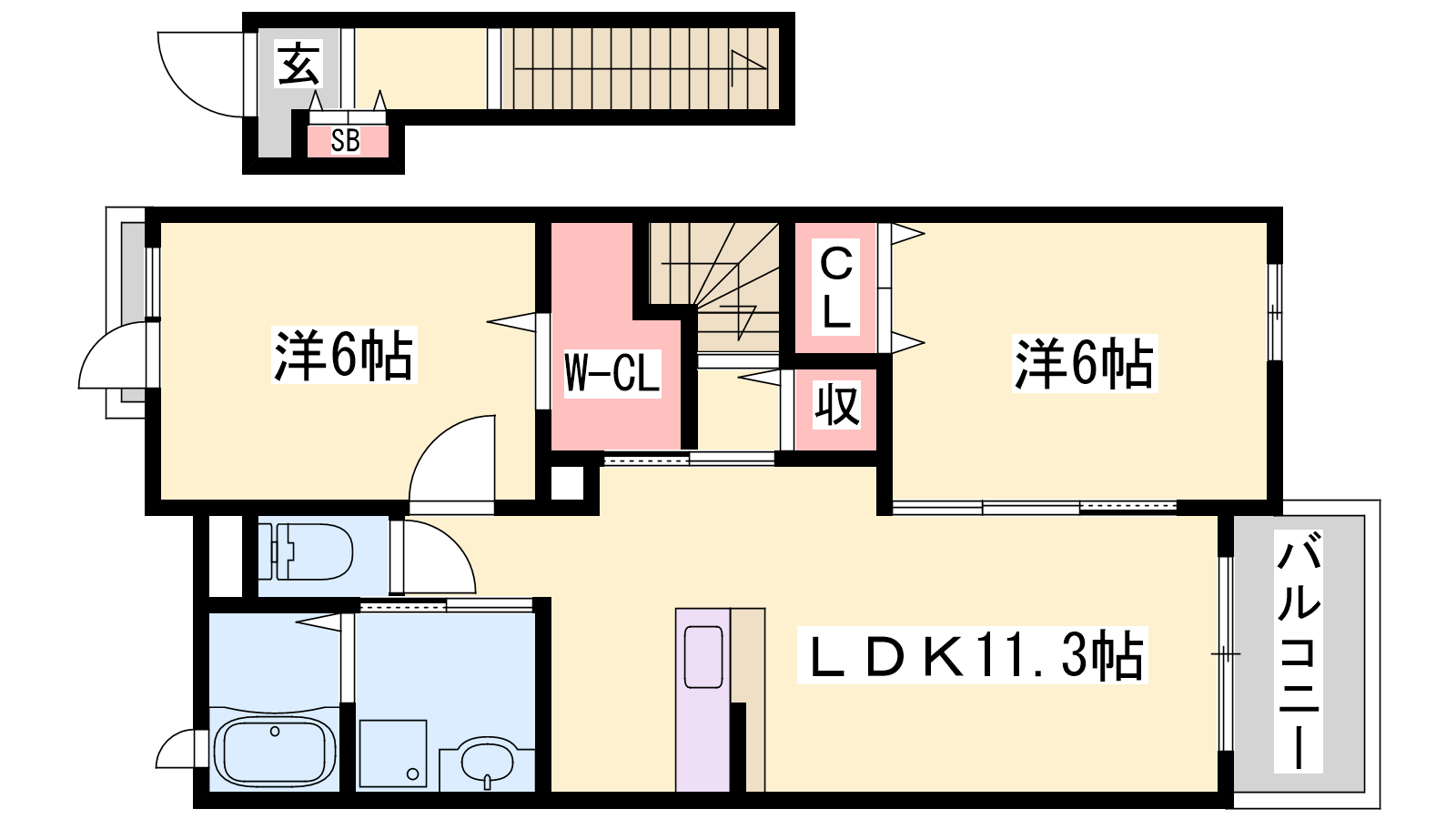 - LDK11.3帖、洋室6帖、洋室6帖
