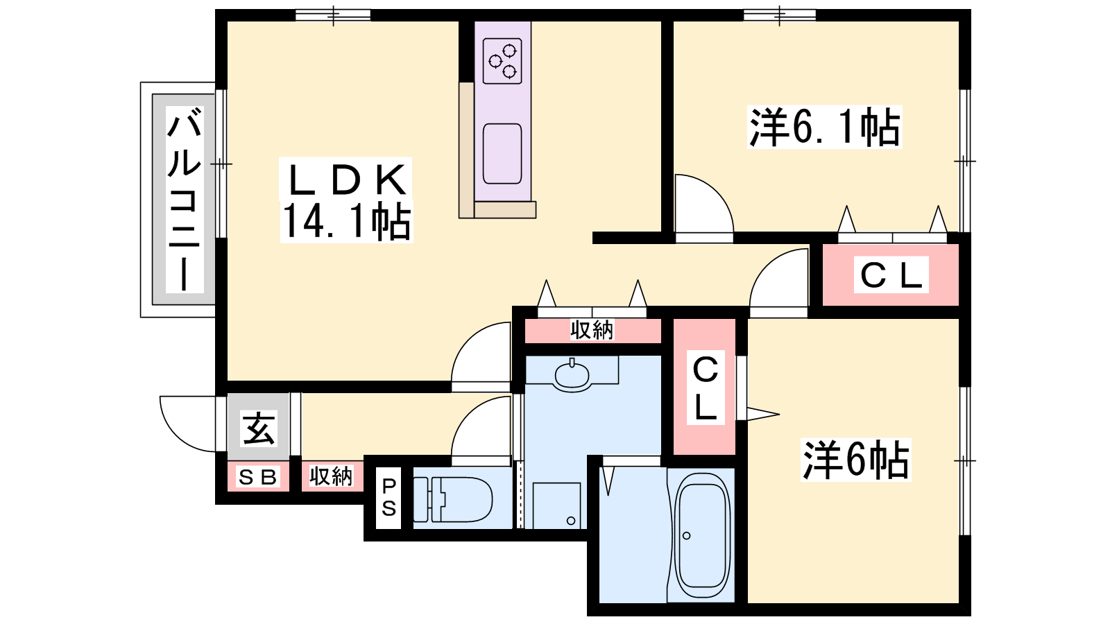 - LDK14.1帖、洋室6.1帖、洋室6帖