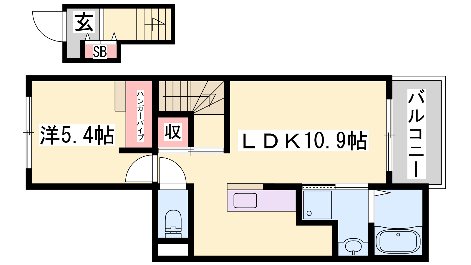 - LDK10.9帖、洋室5.4帖