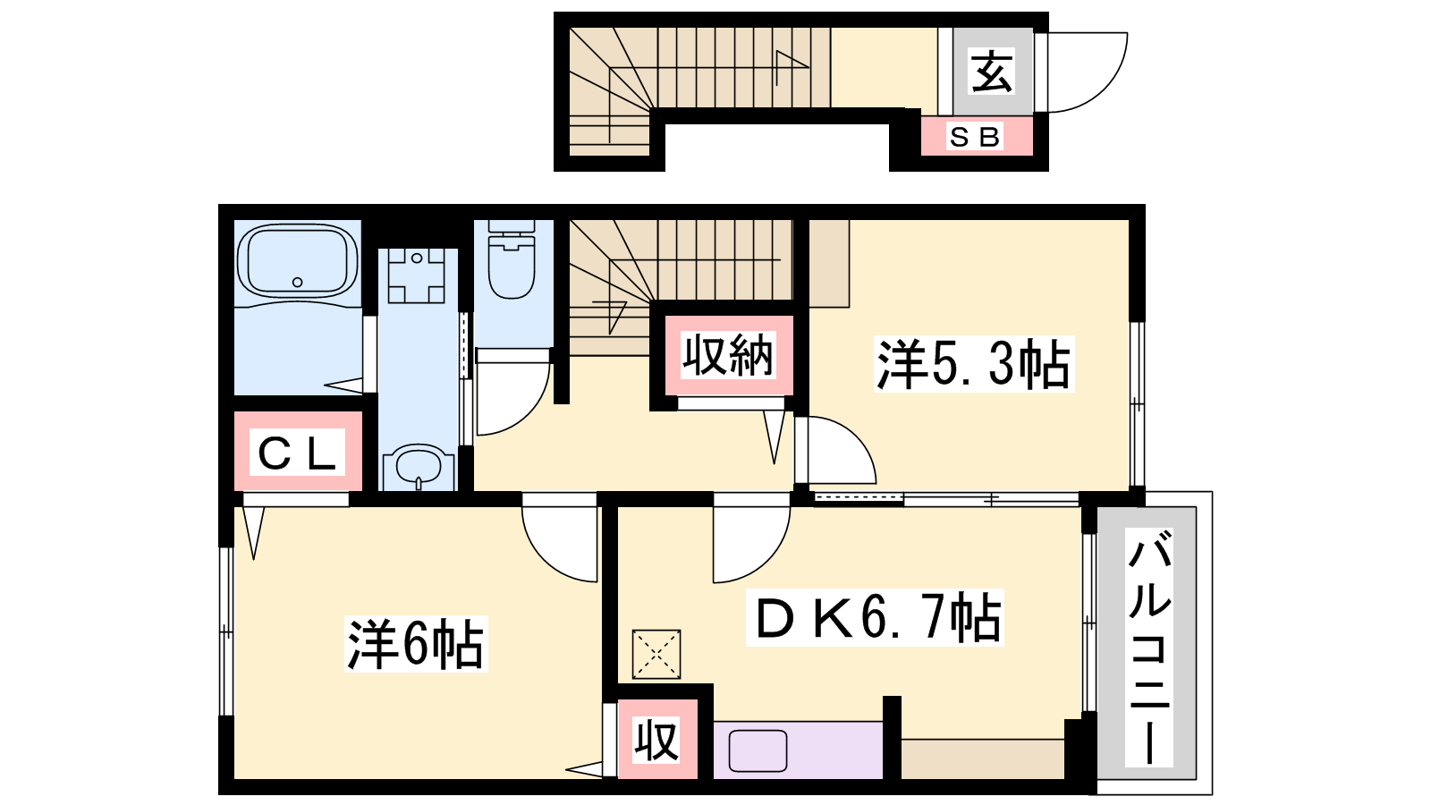 - DK6.7帖、洋室6帖、洋室5.3帖