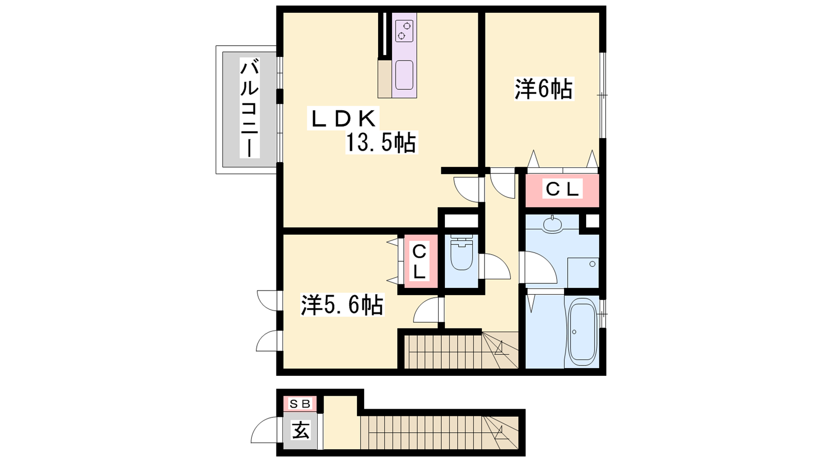 - LDK13.5帖、洋室6帖、洋室5.6帖
