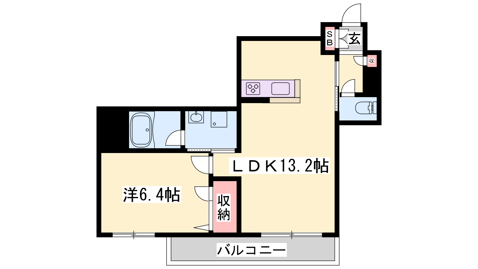 - LDK13.2帖、洋室6.4帖