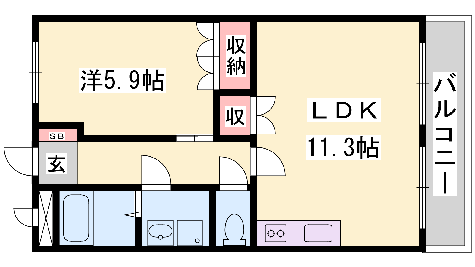 - LDK11.3帖、洋室5.9帖