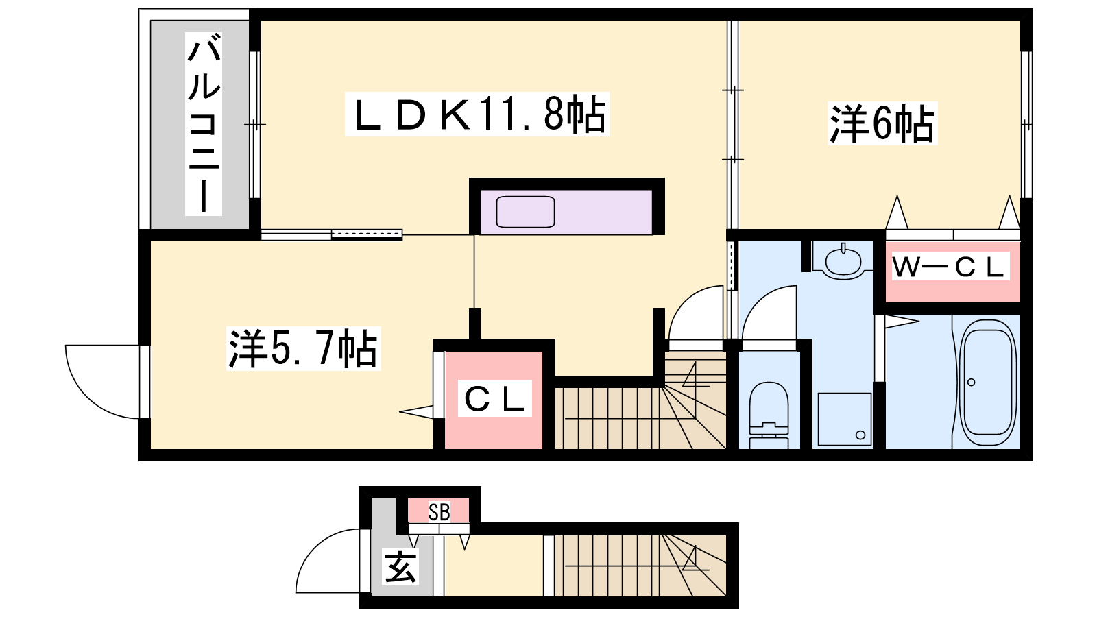 - LDK11.8帖、洋室6帖、洋室5.7帖