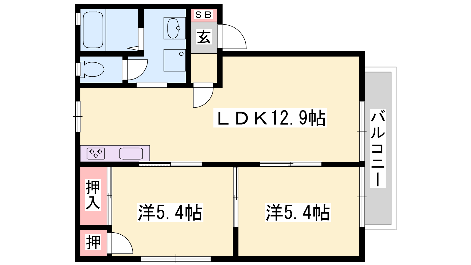 - LDK12.9帖、洋室5.4帖、洋室5.4帖