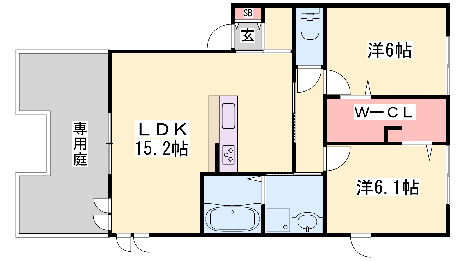 - LDK15.2帖、洋室6.1帖、洋室6帖