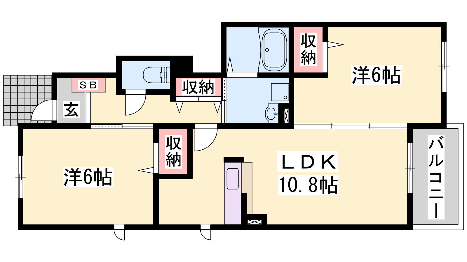 - LDK10.8帖、洋室6帖、洋室6帖
