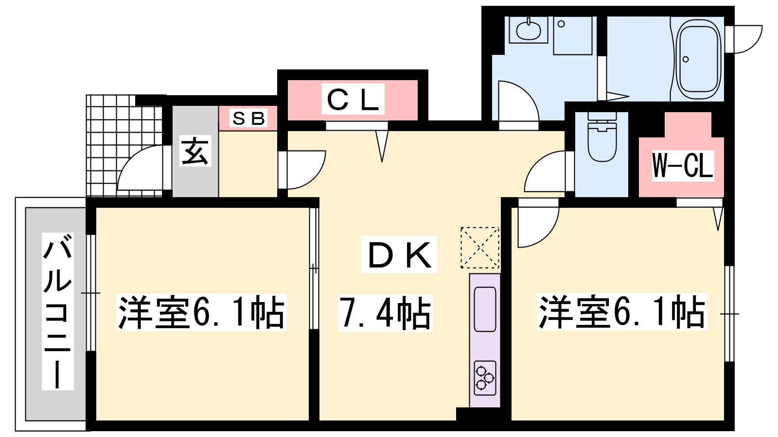 - DK7.4帖、洋室6.1帖、洋室6.1帖