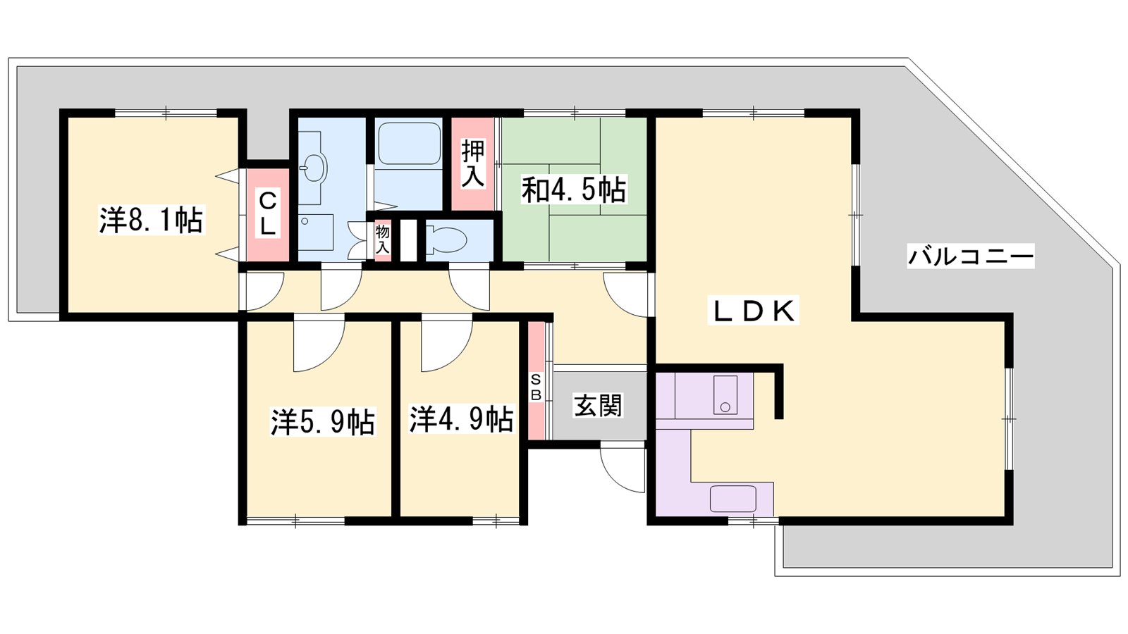 - LDK20.1帖、洋室6.1帖、洋室5.6帖、洋室4.9帖、和室4.5帖