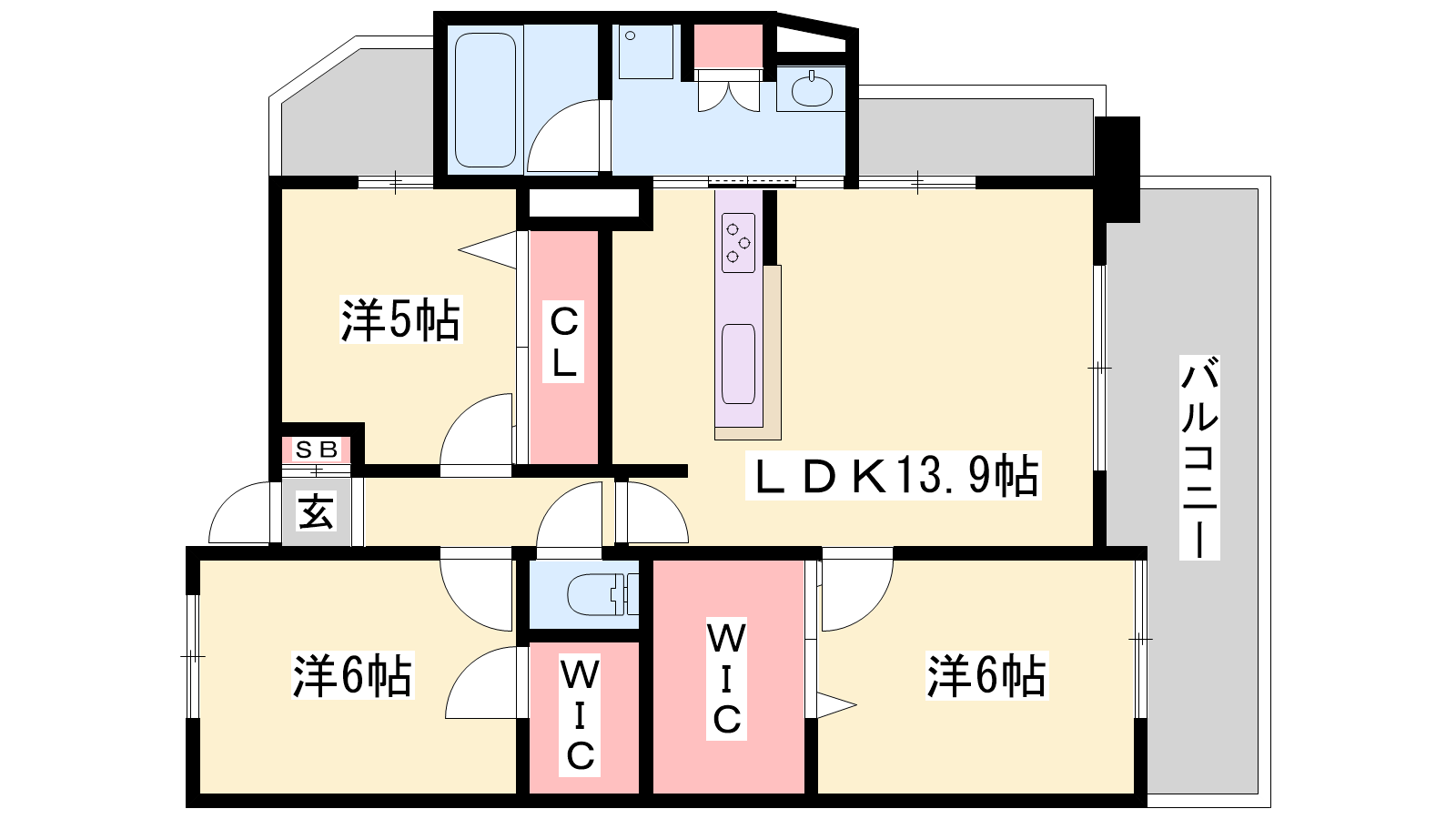 - LDK13.9帖、洋室6帖、洋室6帖、洋室5帖