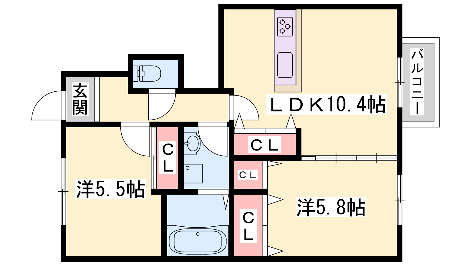 - LDK10.4帖、洋室5.8帖、洋室5.5帖