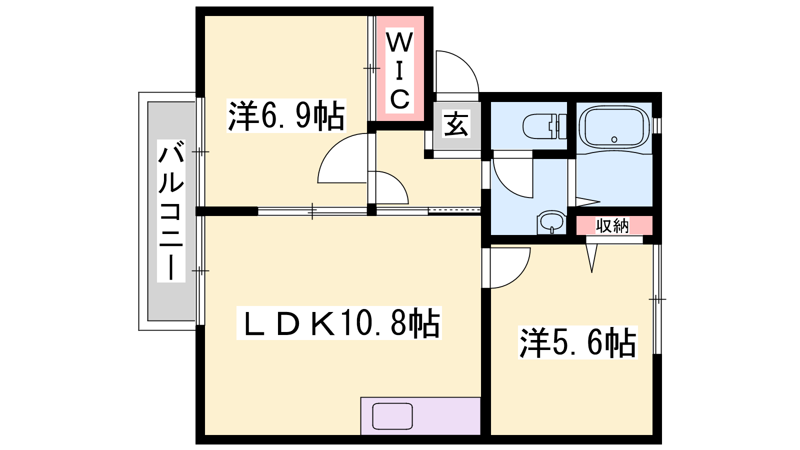 - LDK10.8帖、洋室6.9帖、洋室5.6帖