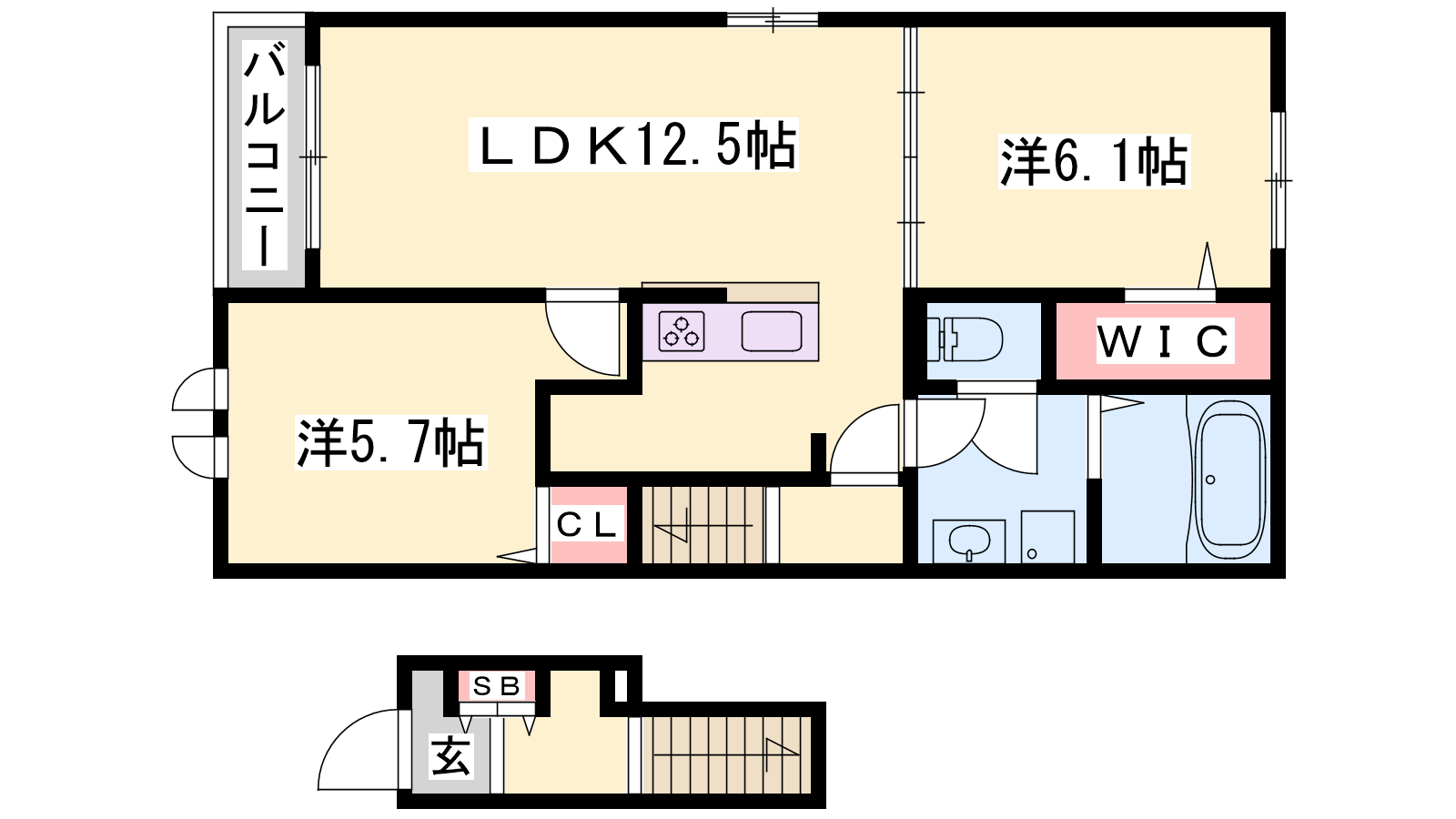 - LDK12.5帖、洋室6.1帖、洋室5.7帖