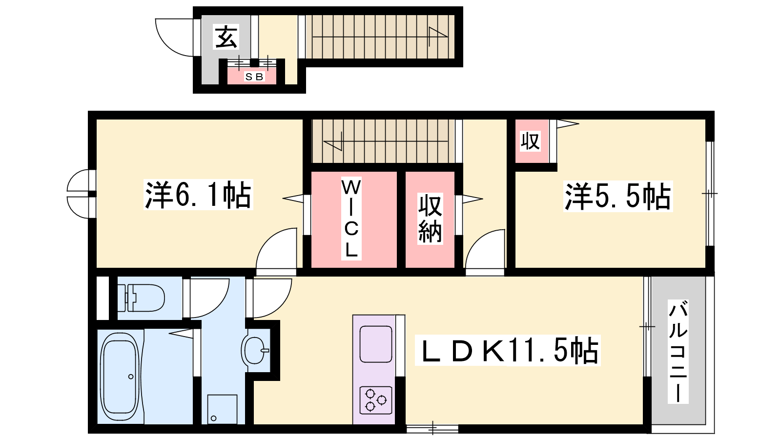- LDK10.4帖、洋室6.1帖、洋室5.5帖