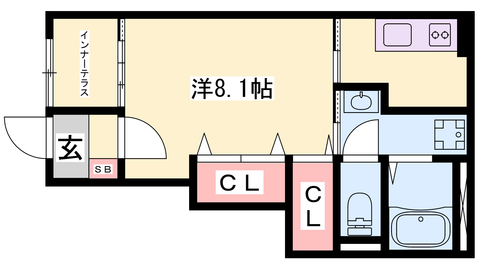 - K3帖、洋室8.1帖