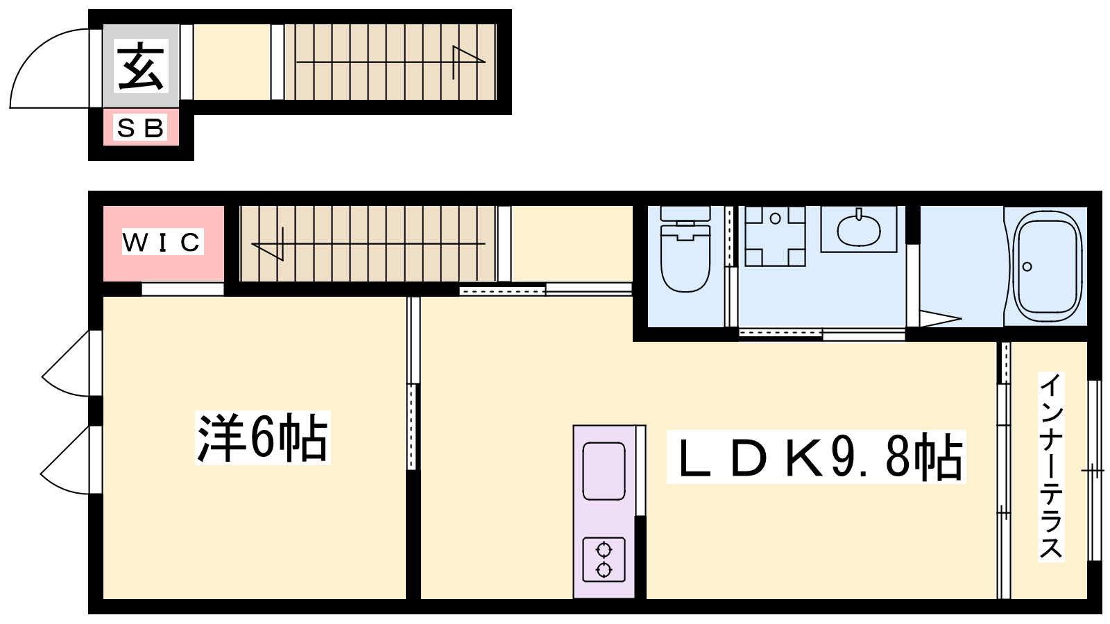 - LDK9.8帖、洋室6帖