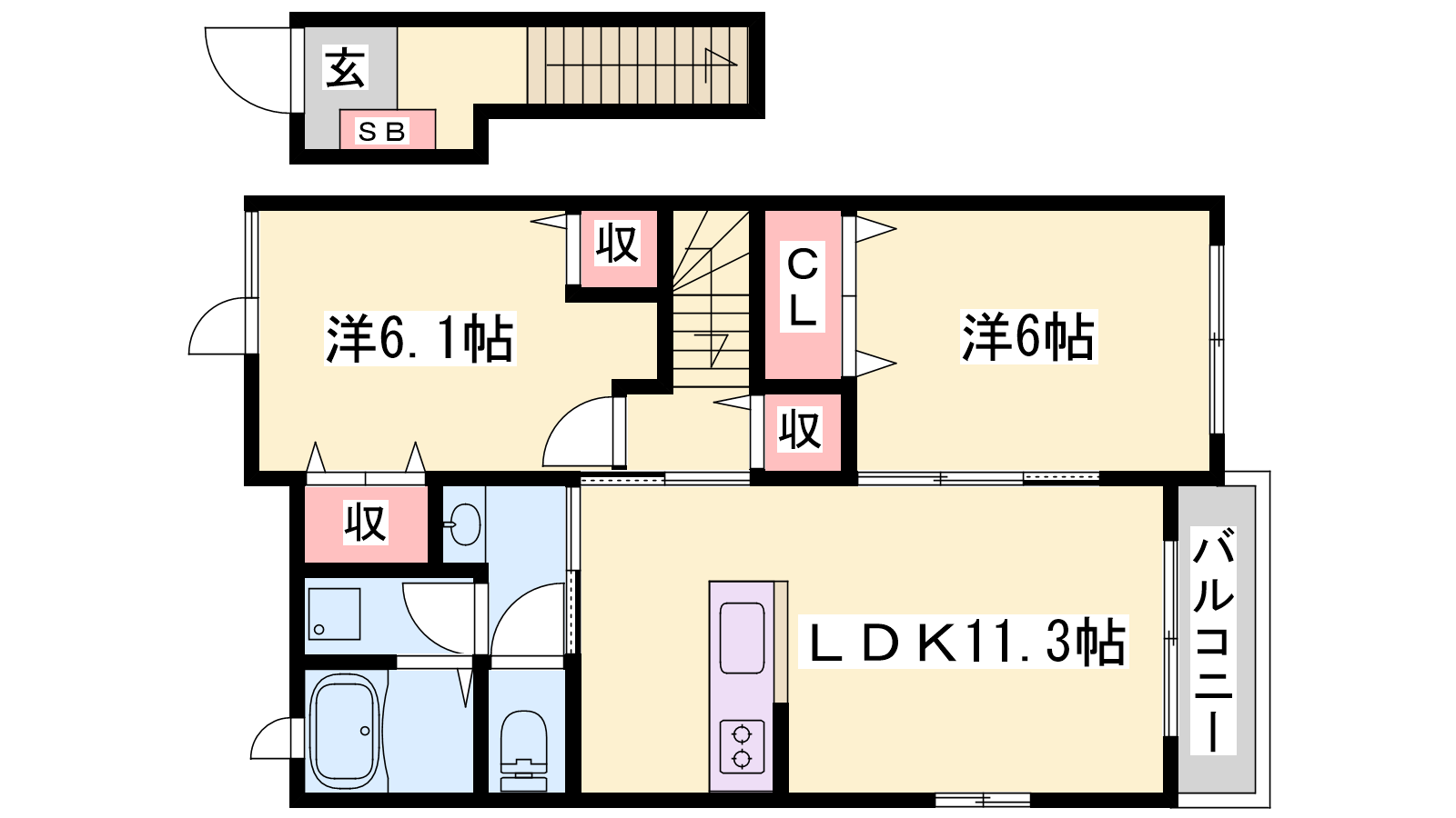 - LDK11.3帖、洋室6帖、洋室6.1帖