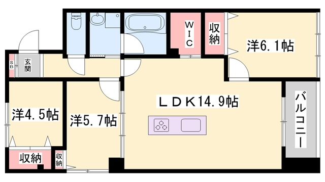 - LDK14.9帖、洋室6.1帖、洋室5.7帖、洋室4.5帖
