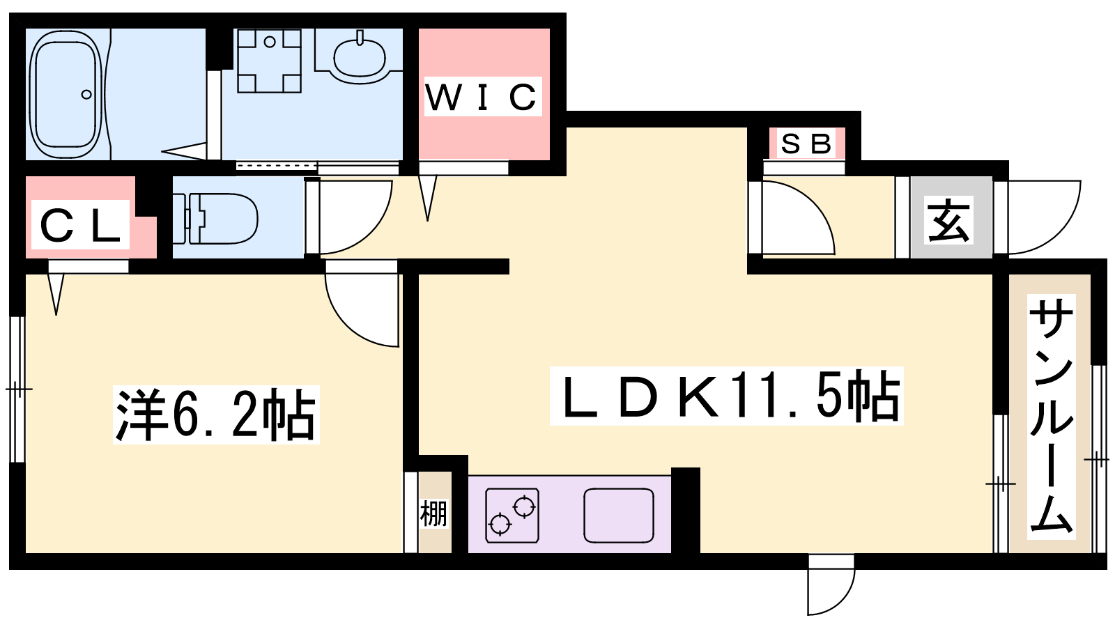 - LDK11.5帖、洋室6.2帖