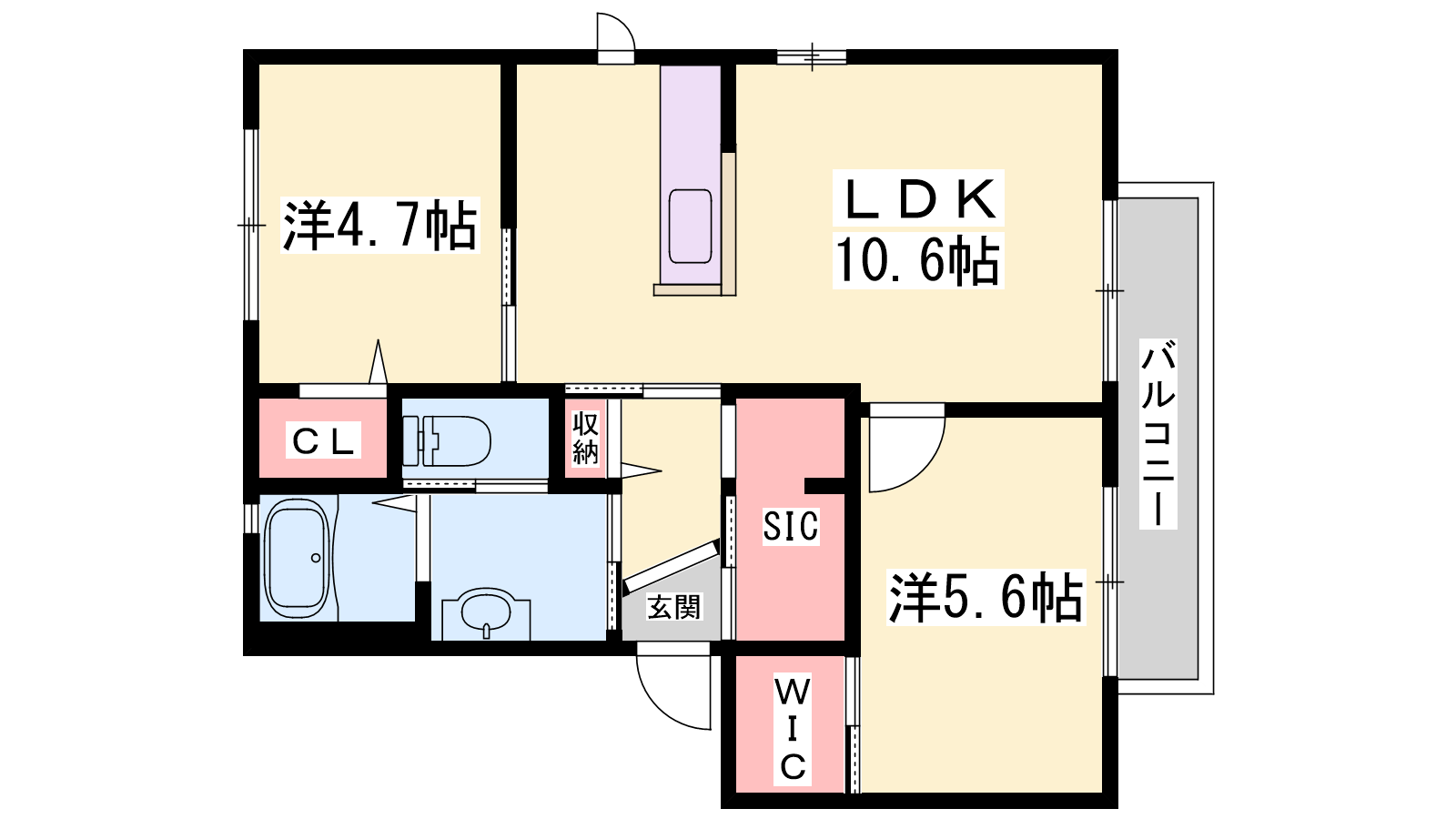 - LDK10.6帖、洋室5.6帖、洋室4.7帖
