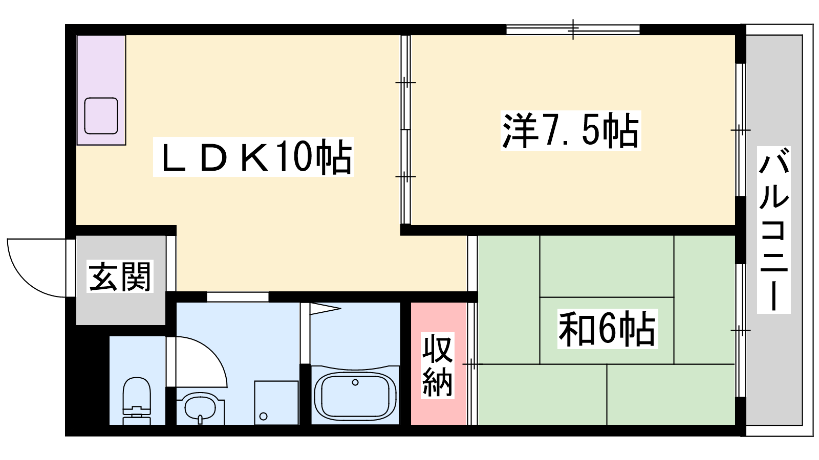 - LDK10帖、洋室7.5帖、和室6帖